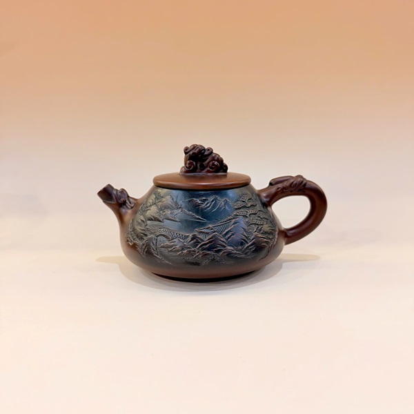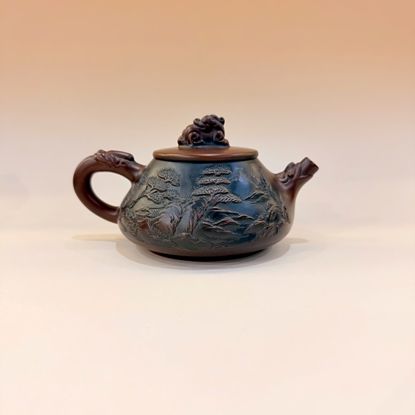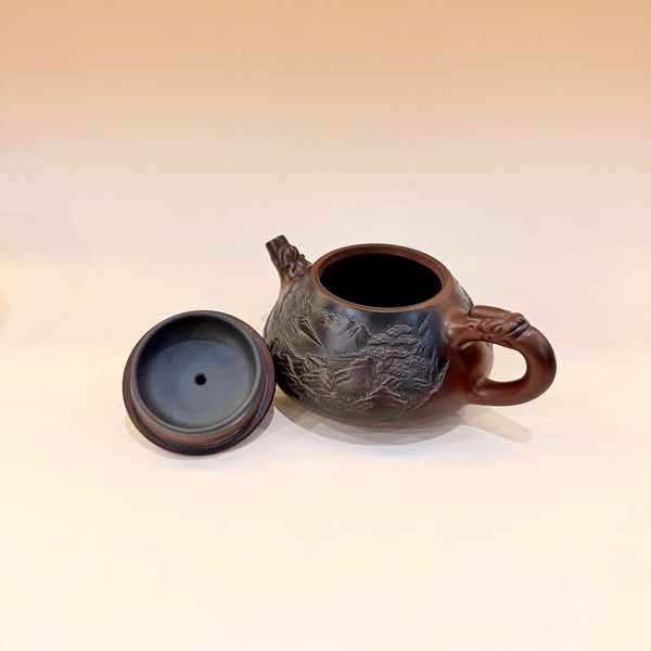Ấm trà tử sa cao cấp trung quốc đắp nổi sơn thủy đẹp 280ml AKC168