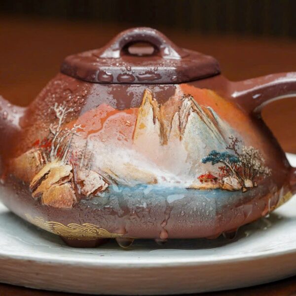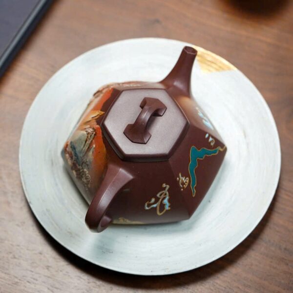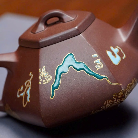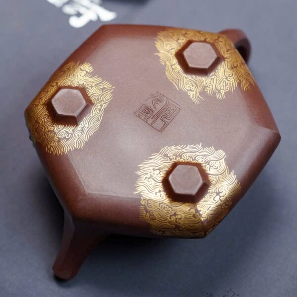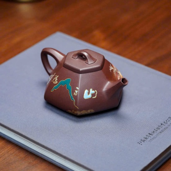 Ấm trà tử sa đất cũ Đáy Tào Thanh Cũ Thạch Biều Lục Giác Sơn Thuỷ 3 Chiều ATS296