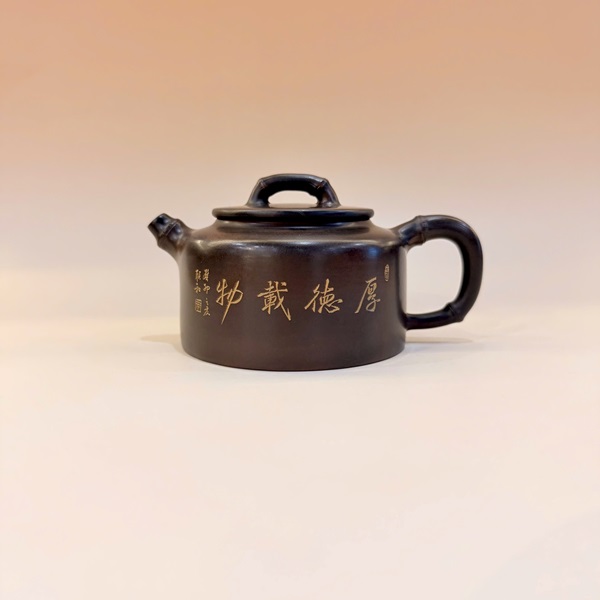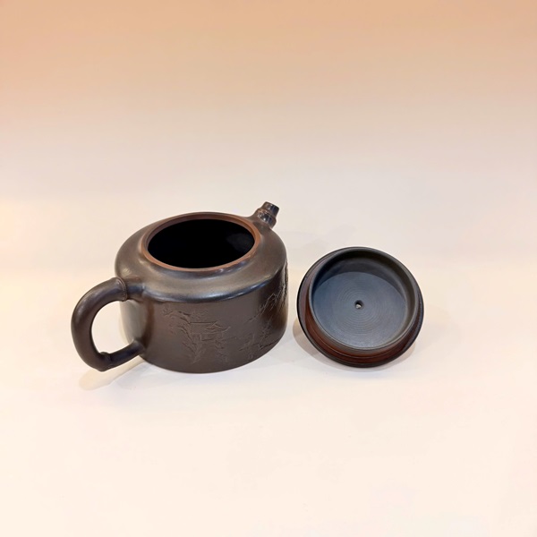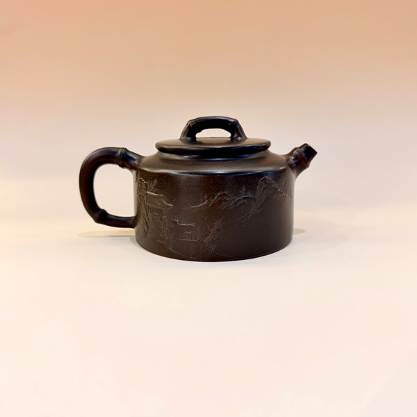 Ấm trà tử sa đức trung hỏa biến nê hưng khắc sơn thủy đẹp 280ml AKC92