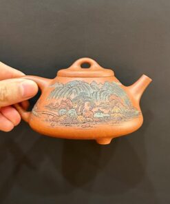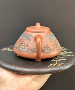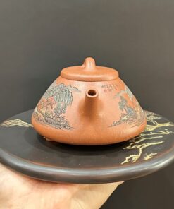 Ấm trà tử sa thạch biều nguyên khoáng đất cũ khắc sơn thủy 20ml đẹp ATS507