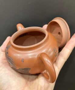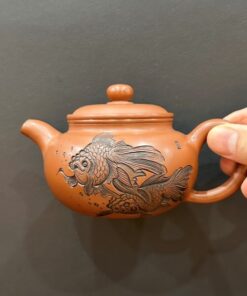 Ấm trà tử sa nê hưng biển phúc khắc song ngư chữ đề thiền trà nhất vị 250ml.