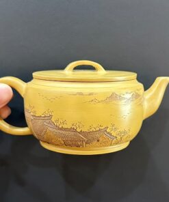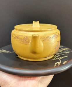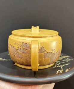 Ấm trà tử sa nê hưng cao cấp khắc phố cổ thủ công 250ml đẹp miệng rộng dễ tháo trà.
