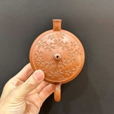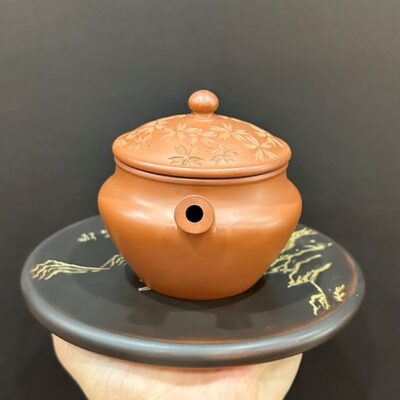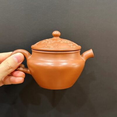 Ấm trà tử sa nê hưng khắc hoa trên nắp đẹp màu đỏ tươi 250ml pha trà ngon.