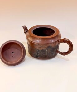 Ấm trà tử sa nê hưng kiến thủy trúc đoạn khắc phố cổ đẹp 250ml AKC282