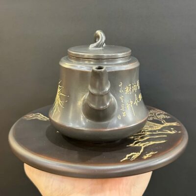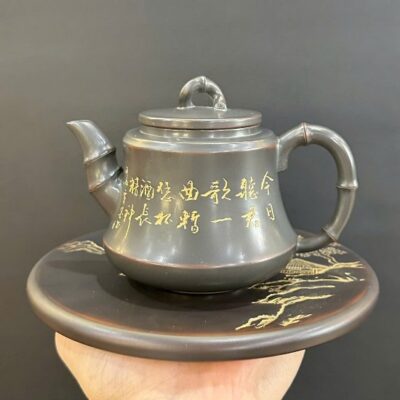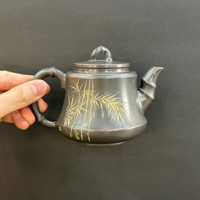 Ấm trà tử sa nê hưng trúc đoạn thủ công khắc trúc đẹp 260ml AKC82