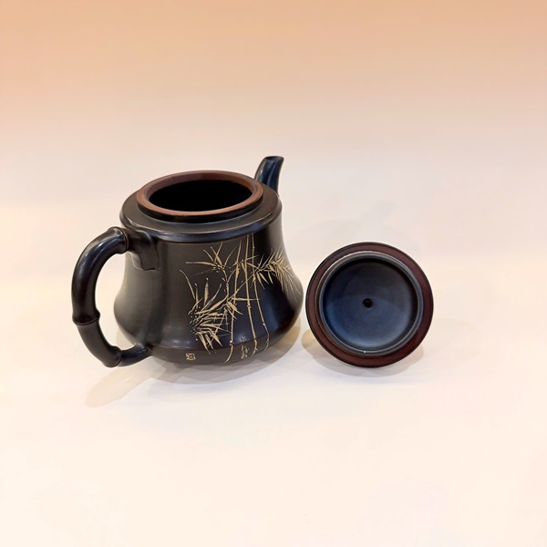 Ấm trà tử sa nê hưng trúc đoạn thủ công khắc trúc đẹp 260ml AKC82