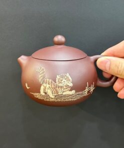 Đặt mua ấm trà tử sa nguyên khoáng đất cũ họa tiết mèo đẹp 230ml ATS96