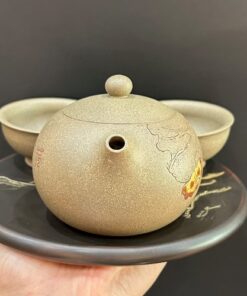 Ấm trà tử sa tây thi khoáng họa sen kèm 2 chén đẹp 270ml ATS95