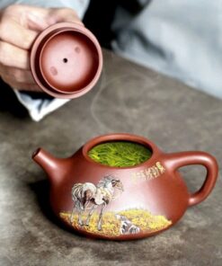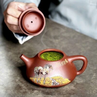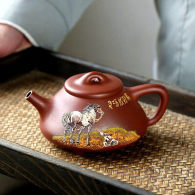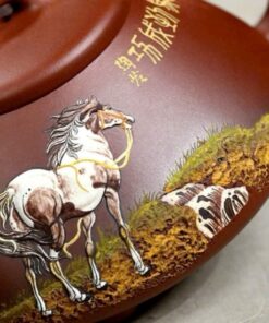 Đặt mua Ấm trà tử sa thạch biều nghi hưng cao cấp đắp nổi ngựa 300ml ATS155
