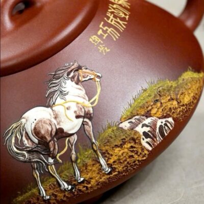 Ấm trà tử sa thạch biều nghi hưng cao cấp đắp nổi ngựa 300ml ATS155