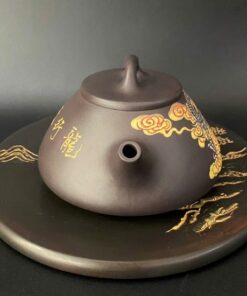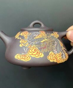 ấm trà tử sa thạch biều cao cấp đắp nổi rồng đất cũ 250ml ATS54