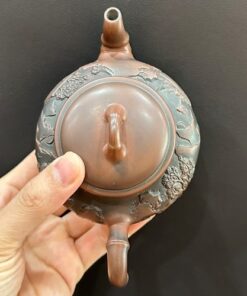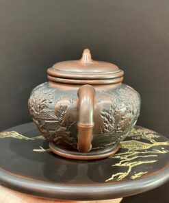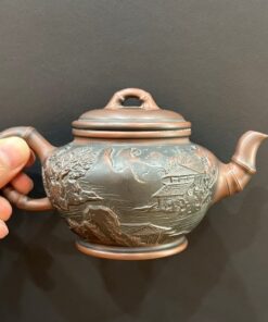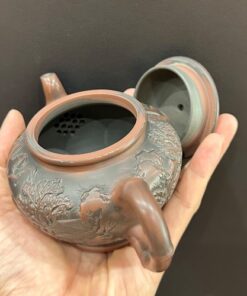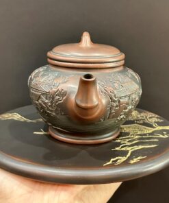 Ấm trà tử sa trung quốc cao cấp hỏa biến khắc sơn thủy thủ công dáng tiêu anh đẹp 260ml.
