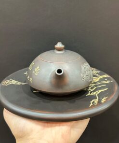 Ấm tử đào nê hưng kiến thủy bán nguyệt hoạ sen thủ công 200ml AKC275
