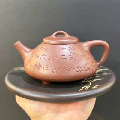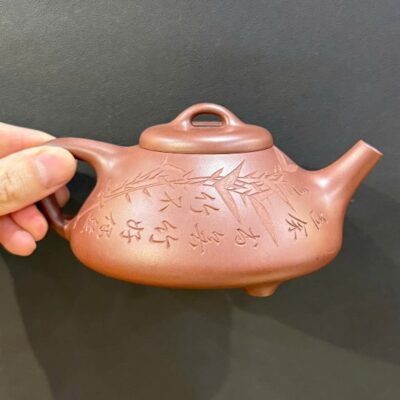Ấm tử sa thạch biều đất cũ nguyên khoáng khắc trúc đẹp 260ml ATS03