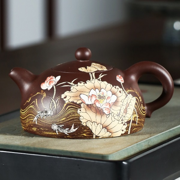 Đặt mua Ấm Tử Sa Đất Cũ Bán Nguyệt Tử Nê Đài Hoa Sen 300ml ATS107
