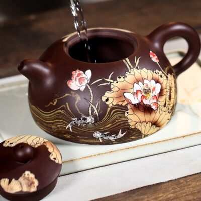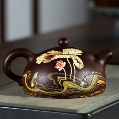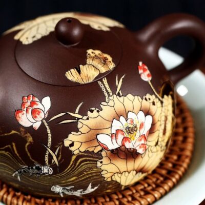 Ấm Tử Sa Đất Cũ Bán Nguyệt Tử Nê Đài Hoa Sen 300ml ATS107