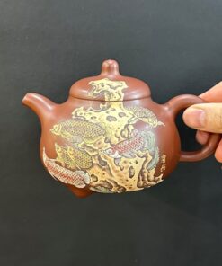 Ấm tử sa đất cũ nguyên khoáng họa quần ngư đồ thủ công 300ml ATS123