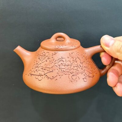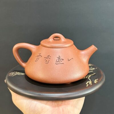 ấm tử sa dáng thạch biều nguyên khoáng đất cũ khắc mai cao cấp 250ml ATS284