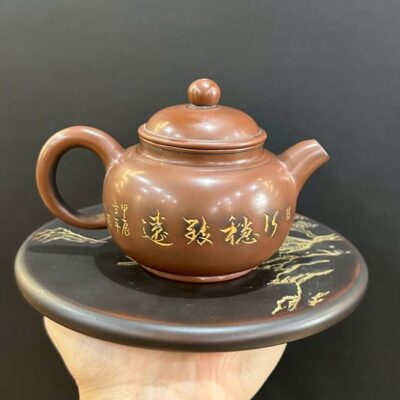 Ấm tử sa nê hưng kiến thủy cao cấp khắc sơn thủy thủ công đẹp 250ml AKC90