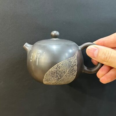 Ấm tử sa cao cấp Tây Thi nê hưng khắc lá đề thủ công 170ml đẹp AKC83