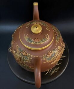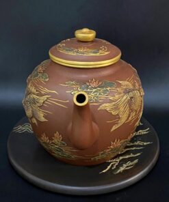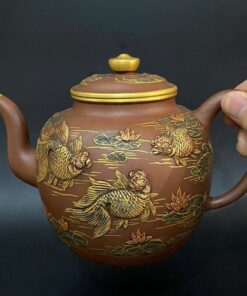 Ấm tử sa cổ cung đình đời Thanh đắp nổi cá vàng đẹp 500ml ATS604