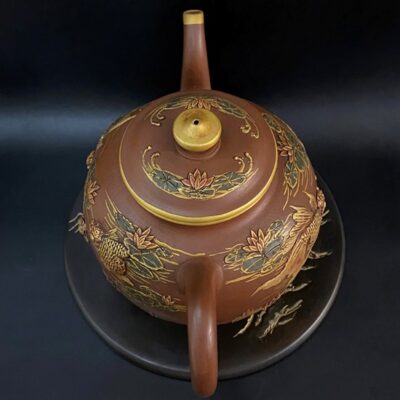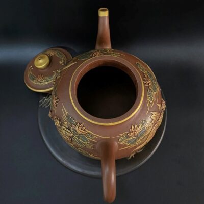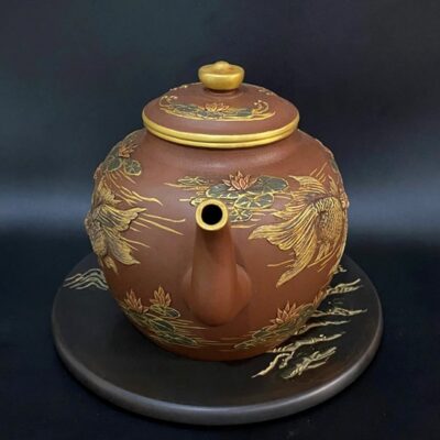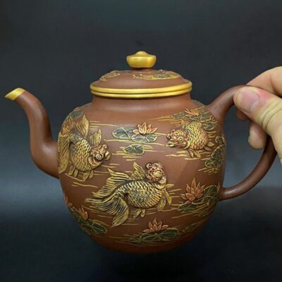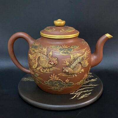 Ấm tử sa cổ cung đình đời Thanh đắp nổi cá vàng đẹp 500ml ATS604