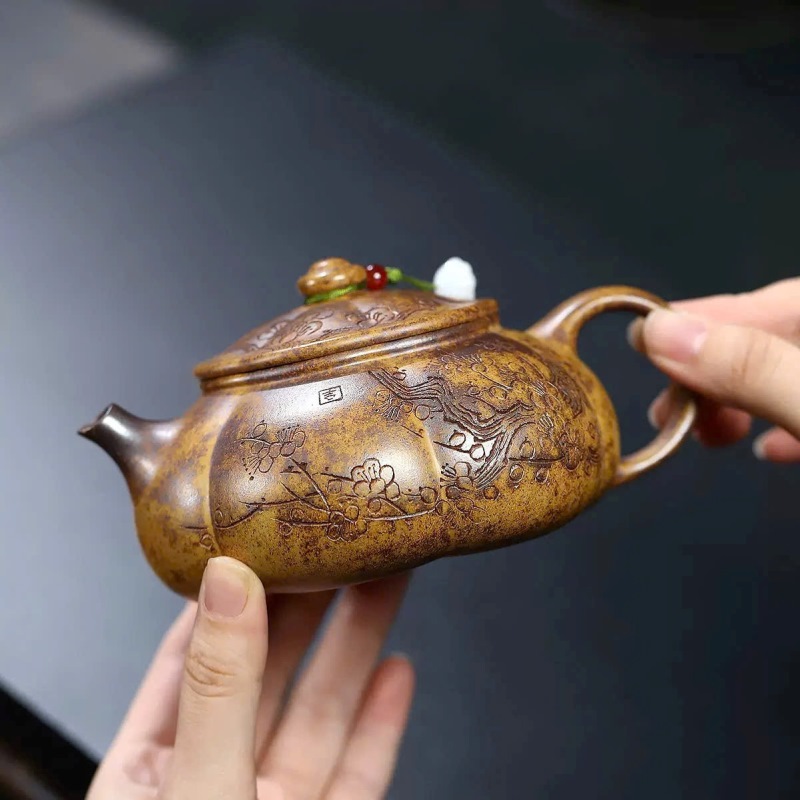 Đặt mua Ấm Tử Sa Dáng Quả Bí Đoàn Nê Hoả Biến Khắc Mai 270ml ATSM22