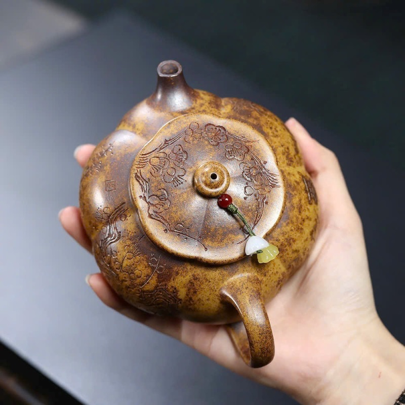 Ấm Tử Sa Dáng Quả Bí Đoàn Nê Hoả Biến Khắc Mai 270ml ATSM22