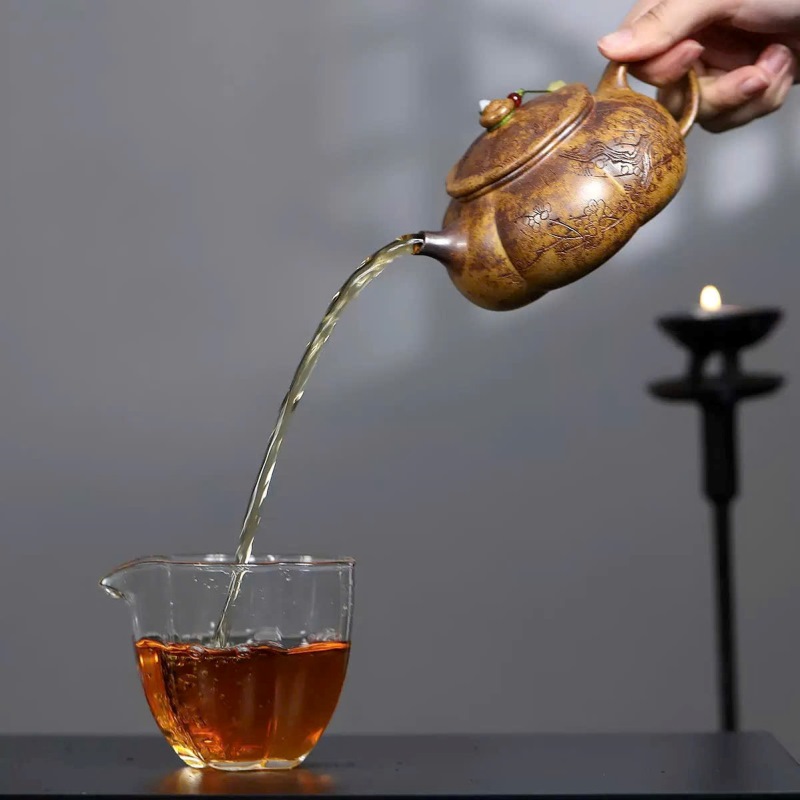 – Tên sản phẩm: Ấm Tử Sa Dáng Quả Bí Hoả Biến Khắc Mai
