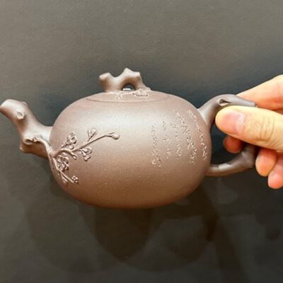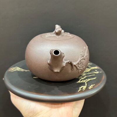 Ấm tử sa đắp nổi báo xuân hoa mai cỡ to đẹp 280ml ATS89