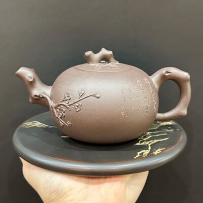 Ấm tử sa đắp nổi báo xuân hoa mai cỡ to đẹp 280ml ATS89