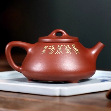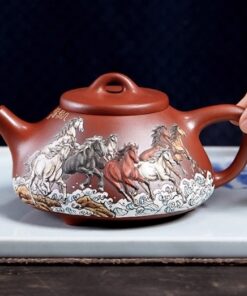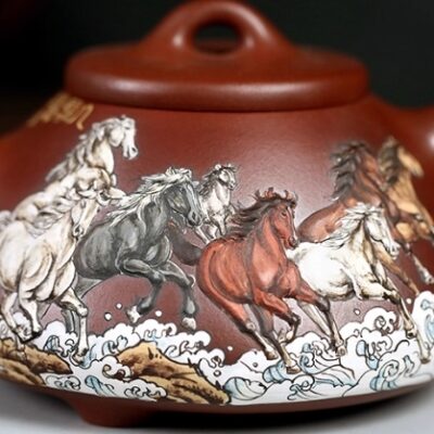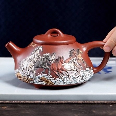 Ấm Tử Sa Đất Cũ Đáy Tào Thanh Dáng Thạch Biều Hoạ Bát Mã Đáo Thành Công 290ml ATS20