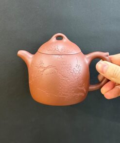 Ấm tử sa đất cũ nguyên khoáng thủ công dáng tần quyền khắc hoa 240ml ATS249
