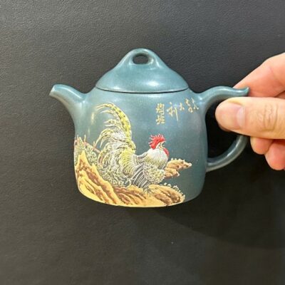 Ấm tử sa đất cũ nguyên khoáng lục nê tần quyền đắp nổi gà đẹp 180ml ATS172
