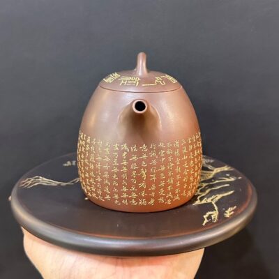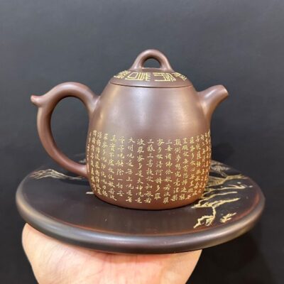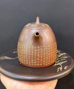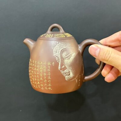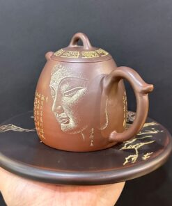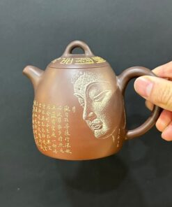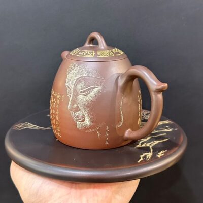 Ấm tử sa hỏa biến cao cấp họa mặt phật thủ công đẹp 280ml AKC52
