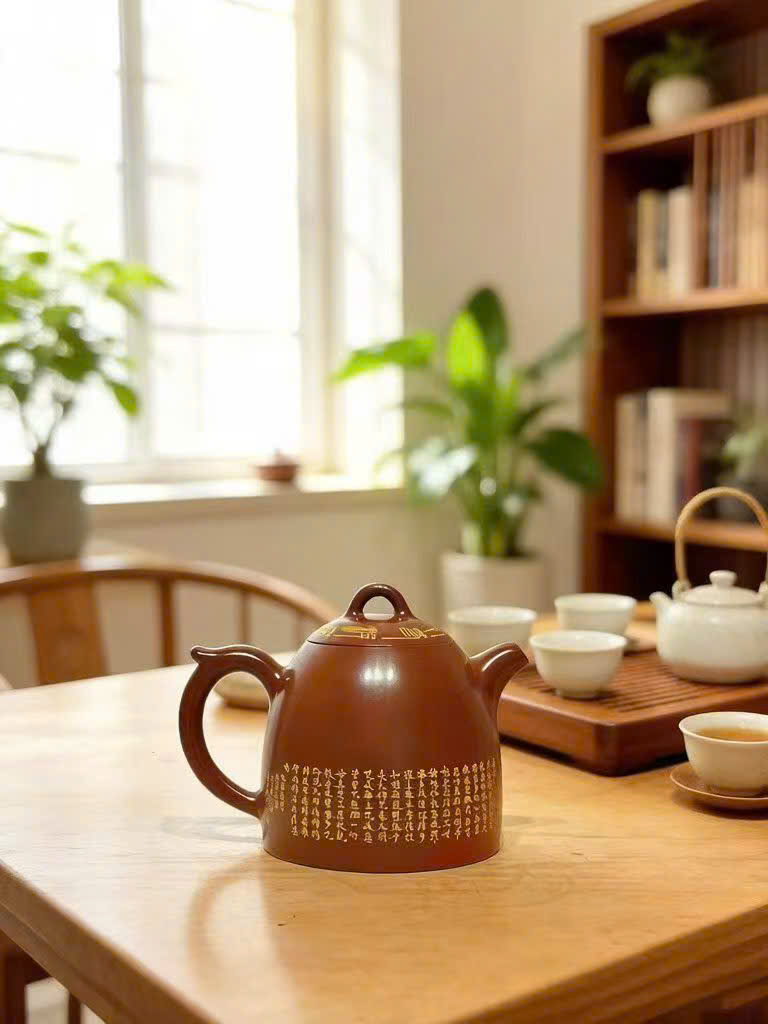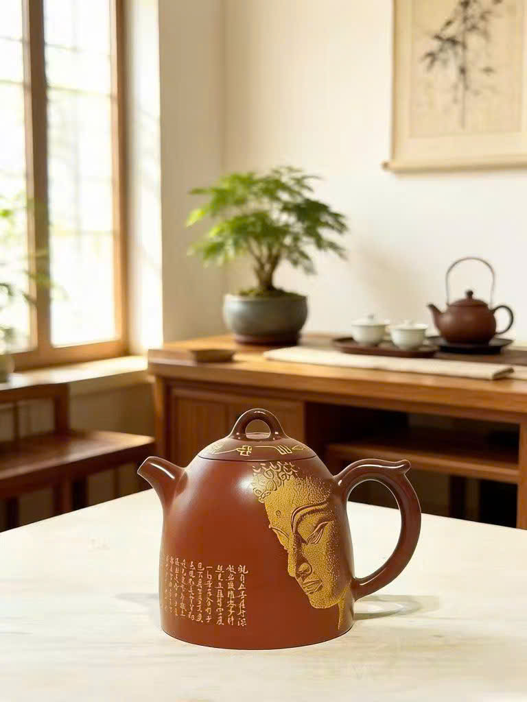 Ấm tử sa hỏa biến cao cấp họa mặt phật thủ công đẹp 280ml AKC52