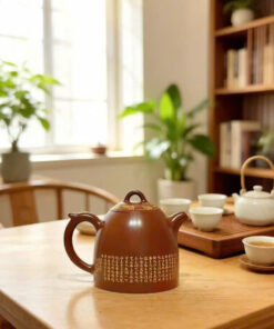 Đặt mua Ấm tử sa hỏa biến cao cấp họa mặt phật thủ công đẹp 280ml AKC52