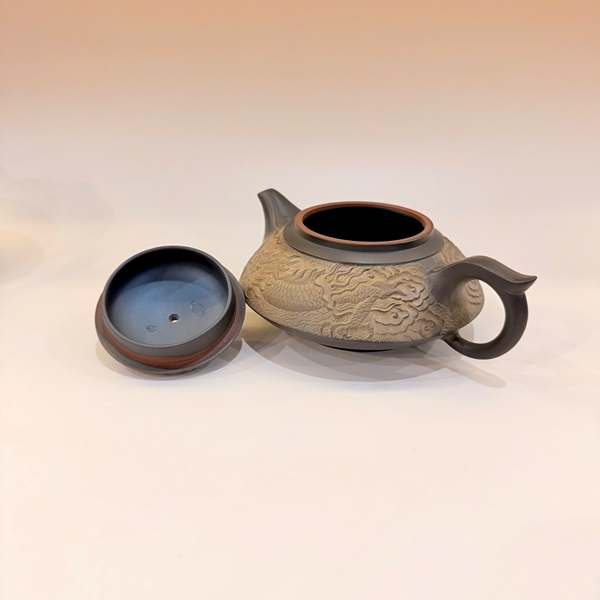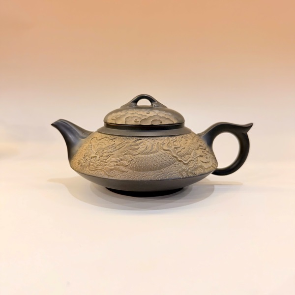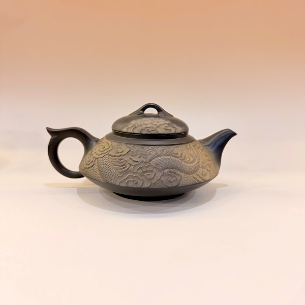 Ấm tử sa hoả biến khắc rồng cao cấp thủ công dáng bán nguyệt 240ml AKC58