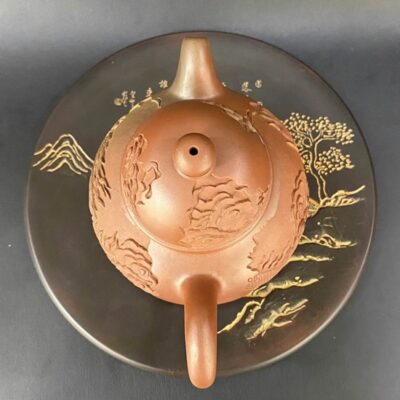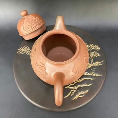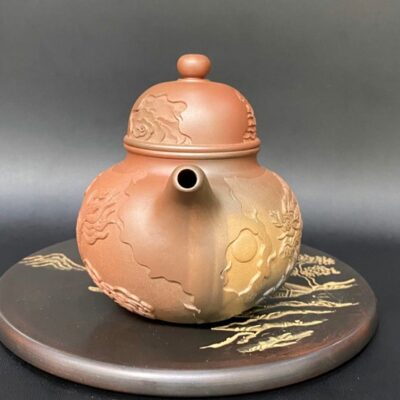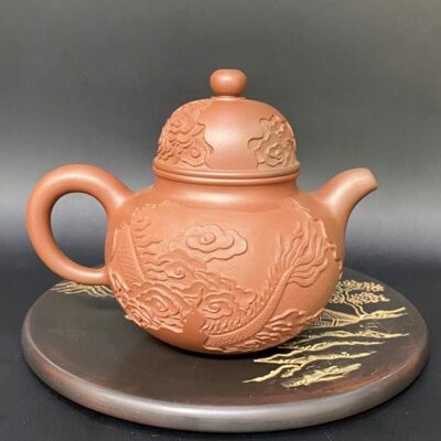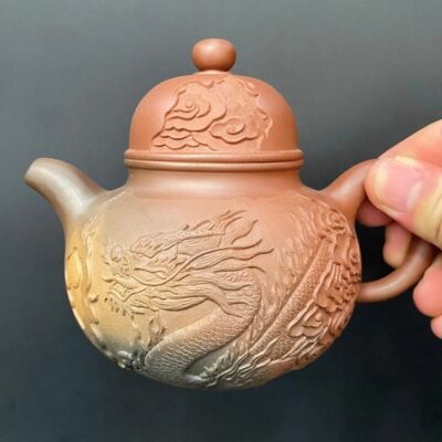 Ấm tử sa hỏa biến khắc rồng nổi thủ công cao cấp 350ml đẹp AKC55