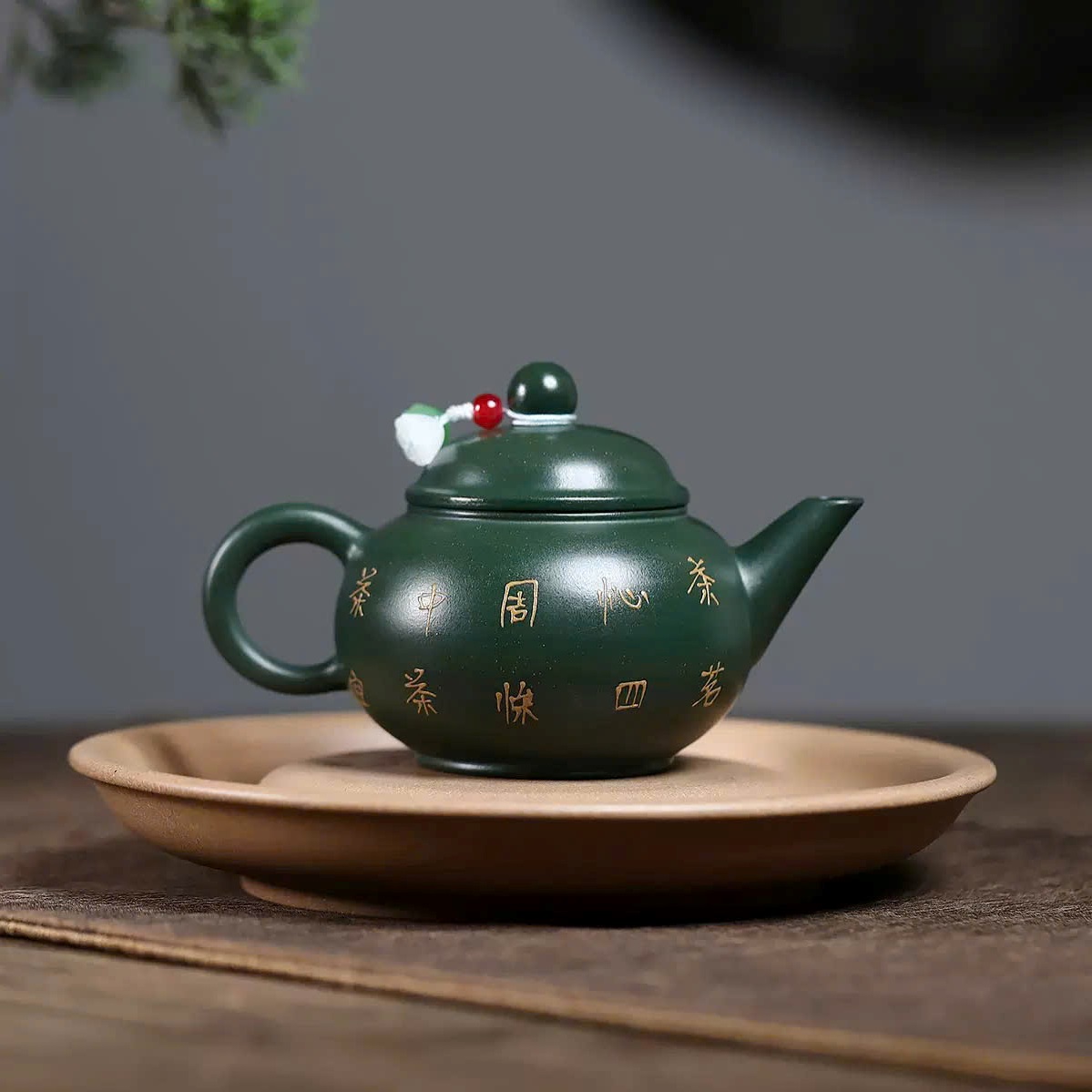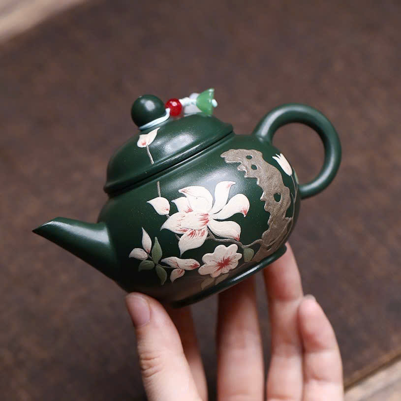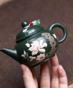 Ấm Tử Sa Lục Nê Thuỷ Bình Khắc Hoa Đối Ẩm 140ml ATSM59