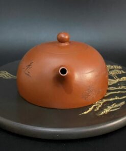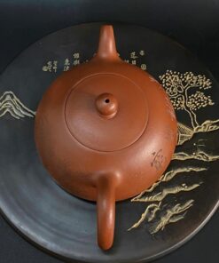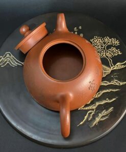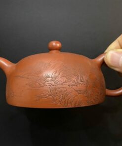 Ấm tử sa bán nguyệt đại hồng bào đất cũ khắc sơn thủy 240ml ATS159