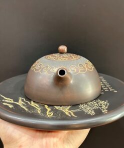 Ấm tử sa nê hưng bán nguyệt xanh khắc phỏng cổ như ý thủ công 200ml đẹp công năng tốt.