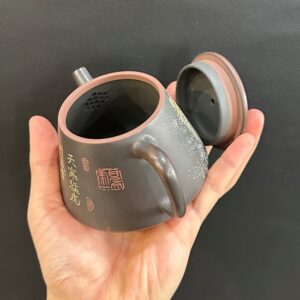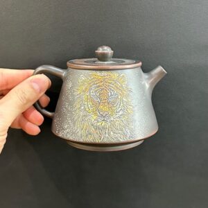 Hãy là người đầu tiên nhận xét “Ấm tử sa nê hưng hỏa biến thủ công dáng đức trung khắc mặt hổ đẹp 230ml AKC158”