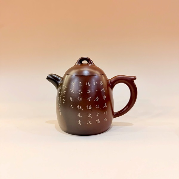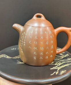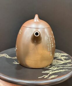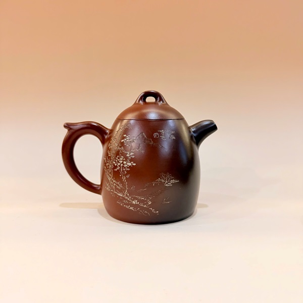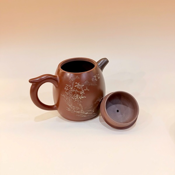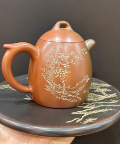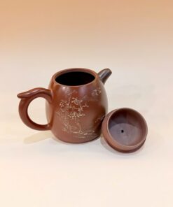 Ấm tử sa nê hưng cao cấp khắc sơn thuỷ thủ công nắp khít nghệ nhân nổi tiếng 250ml.