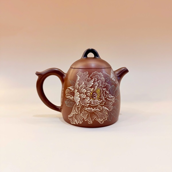 Ấm tử sa nê hưng cao cấp tần quyền khắc hoa mẫu đơn 300ml AKC66