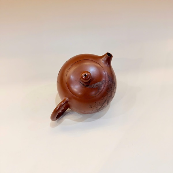 Ấm tử sa nê hưng cỡ nhỏ thủ công dáng tây thi khắc trúc 190ml AKC199
