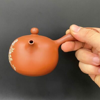 Ấm tử sa nê hưng đường vũ quai ngang họa mẫu đơn đẹp 230ml AKC126
