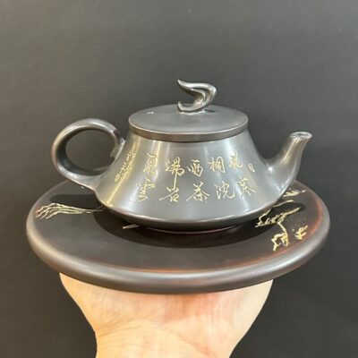 Ấm tử sa đắp nổi sen thủ công văn đán khoáng đẹp 260ml ATS107