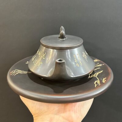 Ấm tử sa đất cũ nguyên khoáng đoàn nê khắc sen cá 240ml ATS276