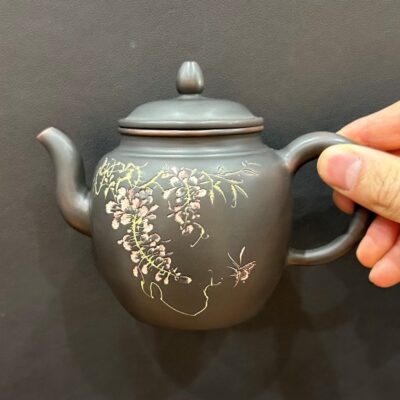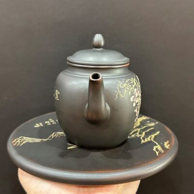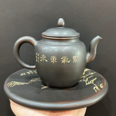 Ấm tử sa nê hưng hỏa biến khắc hoa chữ đề thiền trà nhất vị AKC144